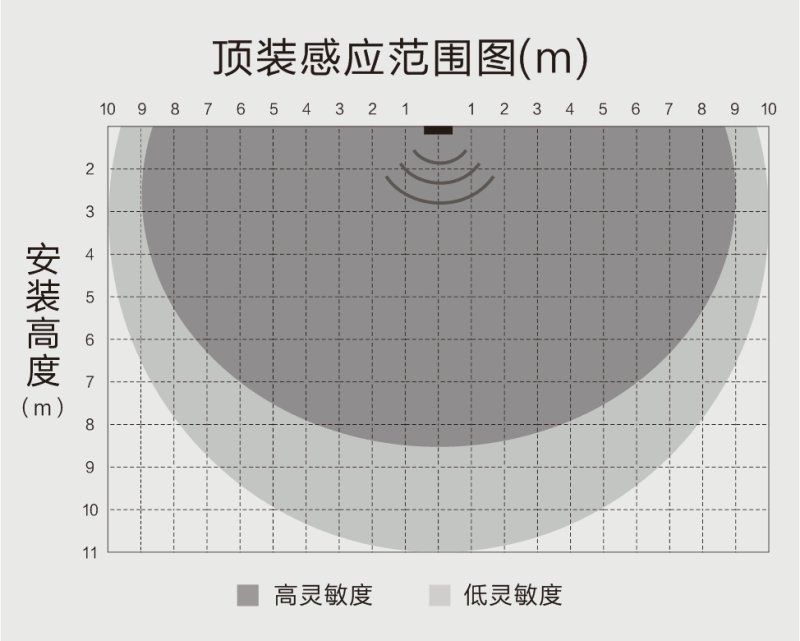 6、远距离感应,最大可安装8米高度,侧装感应距离超过12米